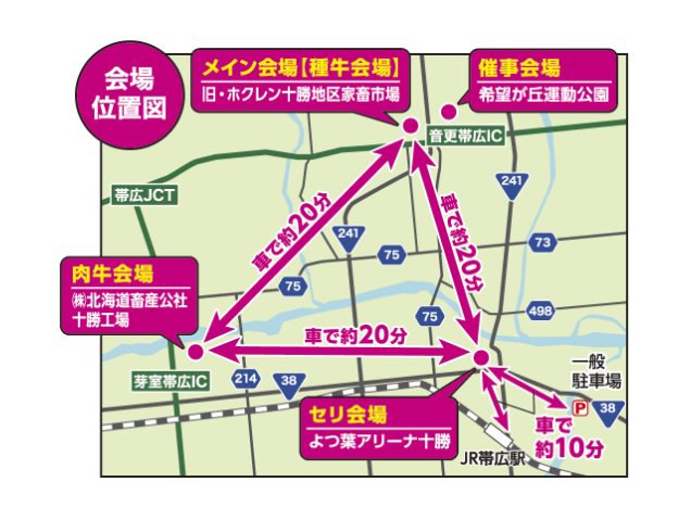 共進会場エリアの協賛企業・団体エリアでは農業機械をはじめ牛舎施設やICTなど畜産関連企業・団体の展示ブースが並びます。 飲食エリアや催事会場の北海道PRエリアではキッチンカーや飲食ブースで北海道・十勝のソウルフード等を提供するとともに、各地の特産品の展示・販売や観光情報等の発信など北海道・十勝の魅力ある食・観光・文化を体感できます。 和牛振興エリアでは、全国の銘柄牛の試食コーナーや北海道和牛が楽しめるBBQコーナーがあり、我が国が世界に誇る和牛の美味しさを堪能できます。過去大会では30~40万人が来場し経済波及効果は約100億円と試算される一大イベントとなっています。 北海道では初の開催で、来場される多くの皆様にも北海道ならではの食・観光・文化を楽しんで頂けるよう”オール北海道”で準備を進め、おもてなしの心でお迎えしたいと考えています。
