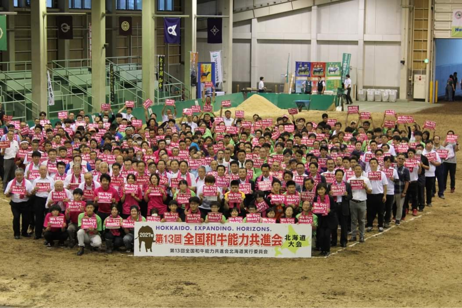 8月30日音更町の十勝農協連アグリアリーナ(全共会場)で、決起大会が開催されました。会場には、生産者をはじめ関係機関団体等総勢450名が参加し、3年後の大会本番に向け決意を新たにしました。