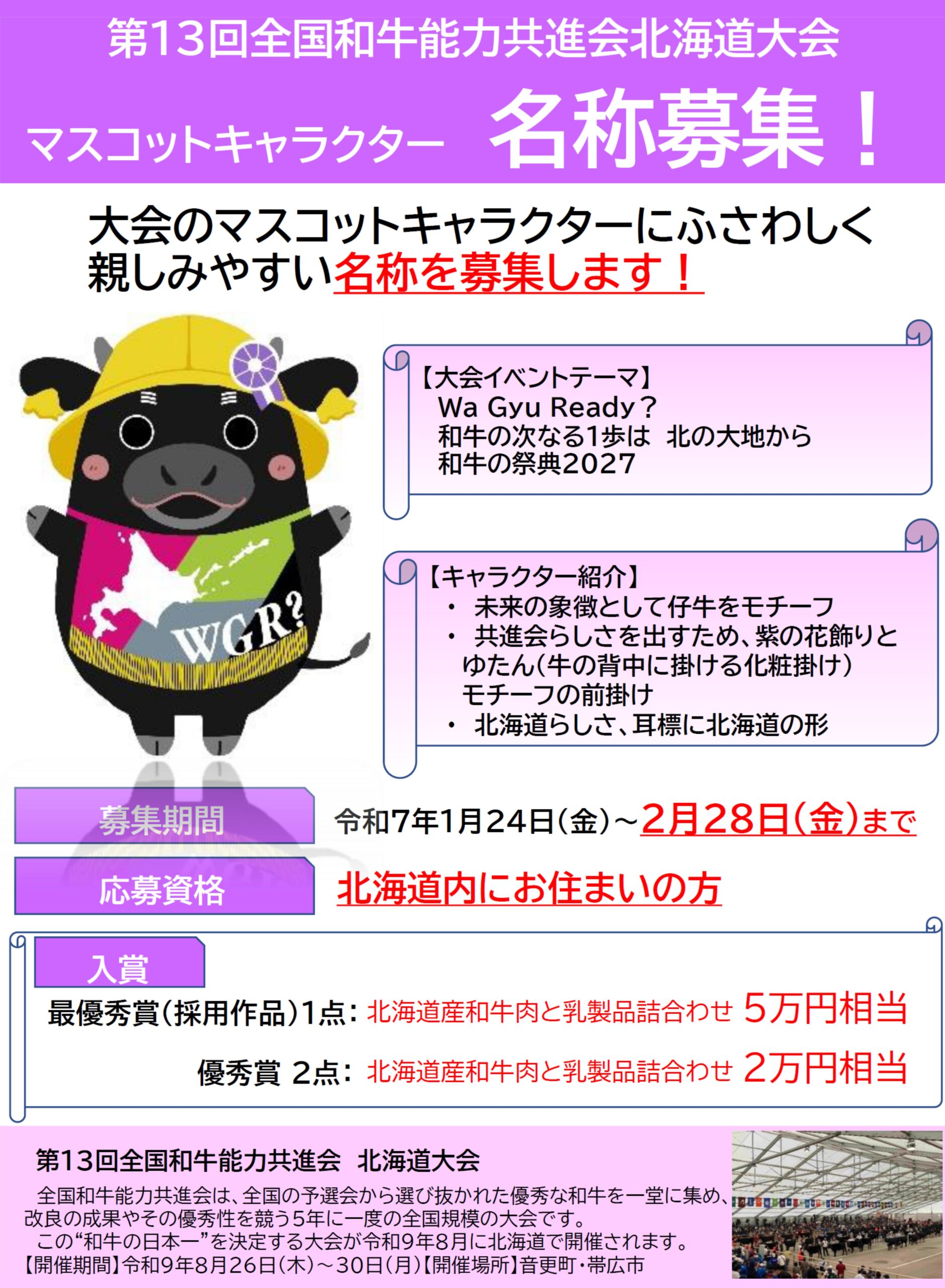 大会のマスコットキャラクターにふさわしく、親しみやすい名称を募集しています。募集期間は2月28日までと残り2週間となりましたので、ぜひみなさん応募してください。